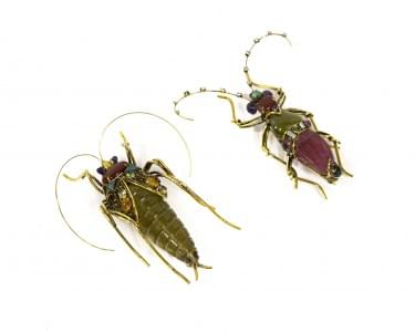 3122. Iradj Moini, lot de deux broches insectes serties de diverses pi...