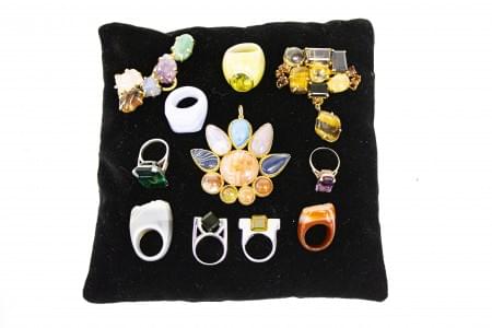 3140. Lot comprenant divers bijoux fantaisie, huit bagues, deux broche...