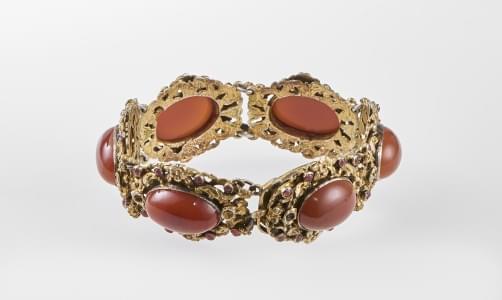 3143. Bracelet composé de six motifs sertis d'agates en cabochon entou...