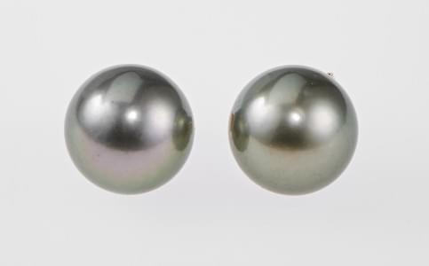 3154. Paire de clous d'oreilles sertis de perles de Tahiti (D env. 8,5...