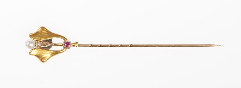 3163. Epingle à cravate Art nouveau à motif floral rehaussé d'une perl...
