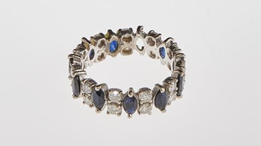 3165. Anneau rivière serti de saphirs taille marquise alternés de deux...