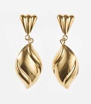 Métal doré, H 12 et 9 cm. On joint une paire de clips d'oreilles...