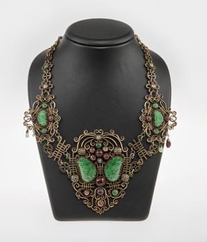 3182. Collier chinois serti de jade sculpté et de diverses pierres
