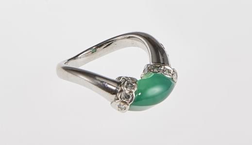3193. Anneau serti d'une agate verte épaulée de diamants