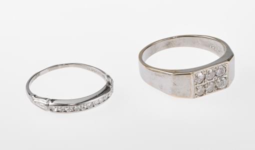 Platine, doigt 60-20. On joint une bague pavée de six diamants t...