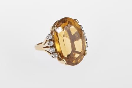 3316. Bague citrine sertie d'une citrine taille ovale (env. 40 ct) épa...