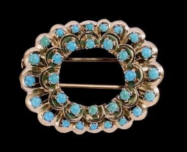 3318. Broche clip sertie de turquoises en cabochon