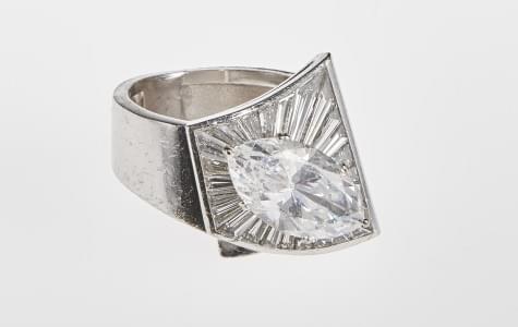 3322. Bague stylisée sertie d'une pierre d'imitation pour le diamant t...