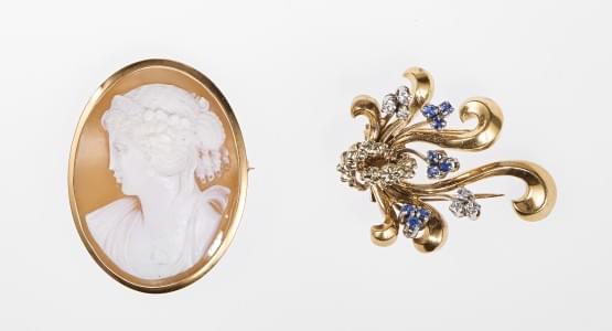 Or 750, H 4 cm, 19 g. On joint un pendentif camée sur coquillage...