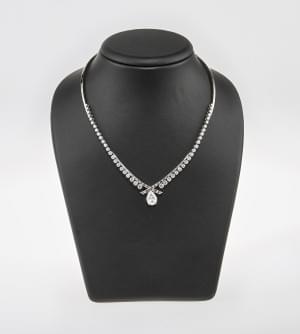 3335. Gübelin, collier serti de diamants retenant une pierre d'imitati...