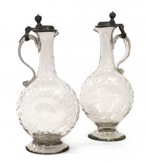 3369. Deux flacons et six petits verres, Bohème