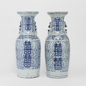 Porcelaine bleu blanc à décor du double bonheur, H 59 cm. Proven...