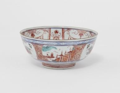 Porcelaine émaillée polychrome à décor de personnages et navires...