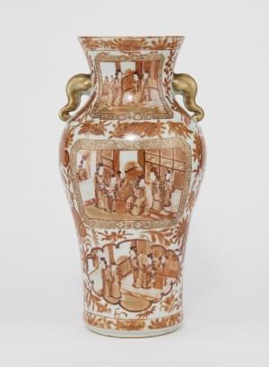 Porcelaine émaillée rouge de fer et or à décor de personnages, H...