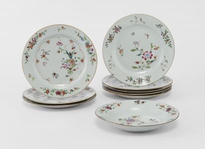 646. Six et trois assiettes famille rose, Chine, Compagnie des Indes,...