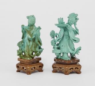 Deux sujets en turquoise, H 9 e t8 cm