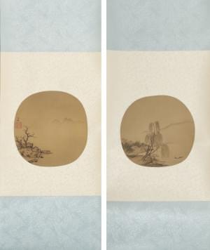 Paysage avec un temple, encre et aquarelle sur papier, monté en...