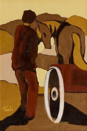 La Charrette, huile sur toile, signée, contresignée et datée 95...