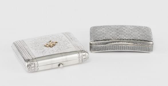 361. Deux étuis à motifs guillochés et gravés de rinceaux