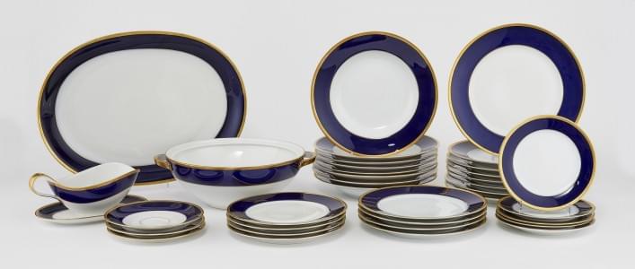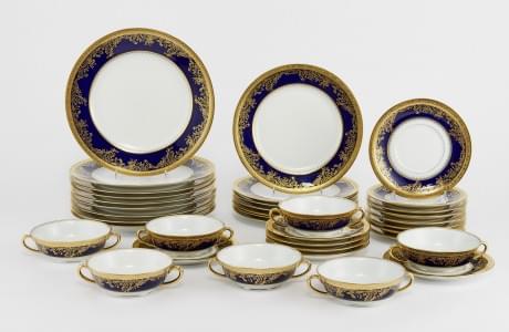 397. Service à dîner à marli bleu nuit décoré de rocaille dorée