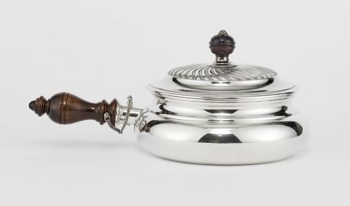 Italie, argent 800 et bois verni, moule à soufflé en porcelaine...