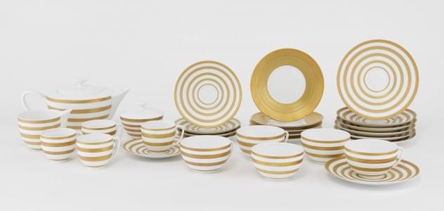 394. Service à décor de branches et oiseaux or sur fond crème, modèle...