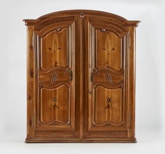 Deux vantaux à l'anglaise, trois tiroirs, bois fruitier marqueté...
