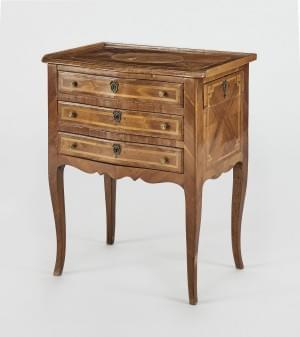 Trois tiroirs, marqueterie de bois fruitiers, 68x55x37 cm