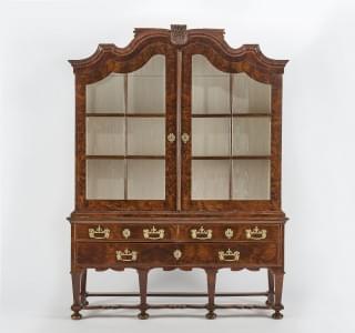 Fronton mouvementé, deux vantaux vitrés, trois tiroirs, piètemen...