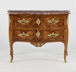 Deux tiroirs, bois de rose et de violette, bronze doré, marbre b...