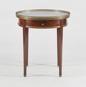 Acajou, laiton et marbre blanc, 74x66 cm. Provenance: collection...