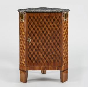 Un vantail marqueté de cubes, marbre gris, 89x43x43 cm. Provenan...