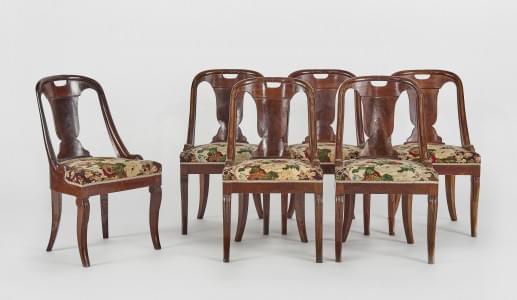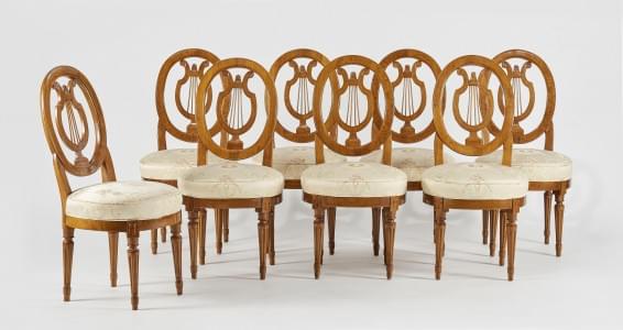 607. 16 chaises à dossier lyre d'époque Biedermeier