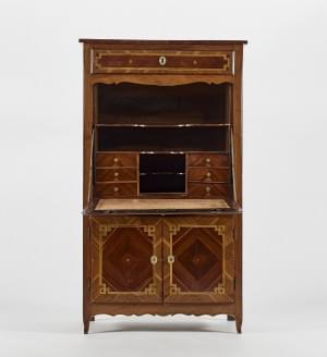 Un tiroir, un abattant et deux vantaux, bois fruitier marqueté d...