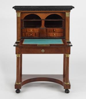 Acajou, bois noirci, bronze doré et marbre, 138x90x53 cm. Proven...