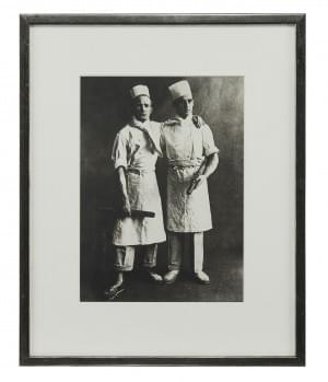 Les deux pâtissiers, carton d'invitation en noir et blanc, 25x19...