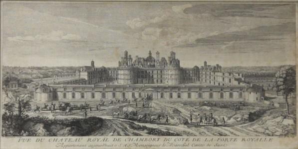 Vue du château de Chambord, gravure, 26x47 cm. Provenance: colle...