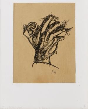Main de Hans Alder, bois gravé sur papier, monogrammé, signé, 28...