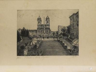 Trois vues de Rome: les escaliers de la place d'Espagne, le chât...