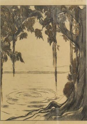Le fleuve vert, lithographie originale en couleurs tirée sur pap...