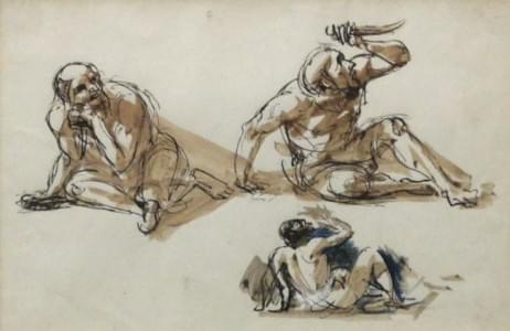 Scène de plage, gouache et encre sur papier, 23x29 cm. Provenanc...