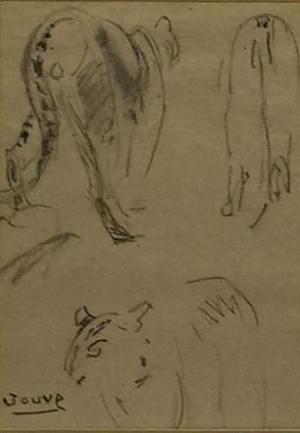 Trois études de félins, crayon gras sur papier, 20x14 cm