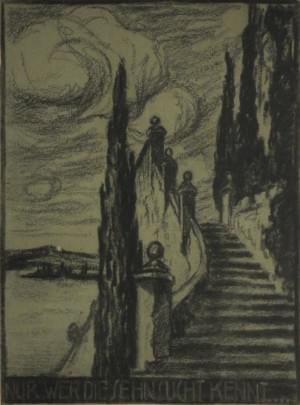 Nur Wer die Sehnsucht kennt, fusain sur papier, signé à la mine...