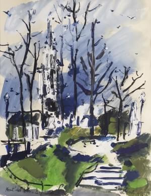 Mont des Arts Bruxelles, gouache sur papier, signée et datée 956...