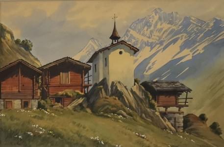 Eisten, Lötschental, aquarelle sur papier, signée W Geez, 35x51...
