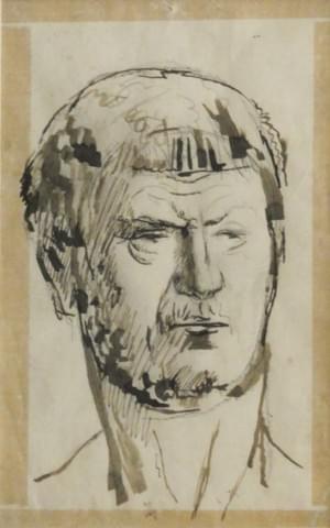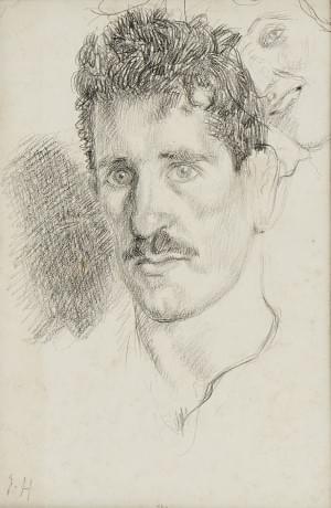 Autoportrait de l'artiste, crayon noir sur papier, monogrammé, 2...