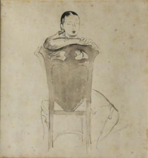 Accouchement, crayon sur papier, monogrammé, 26x19 cm