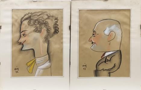 Deux études de personnages dans un même cadre, encre, aquarelle...