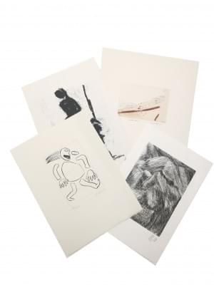Personnages et abstractions, 4 gravures, Henri Fresset et signat...